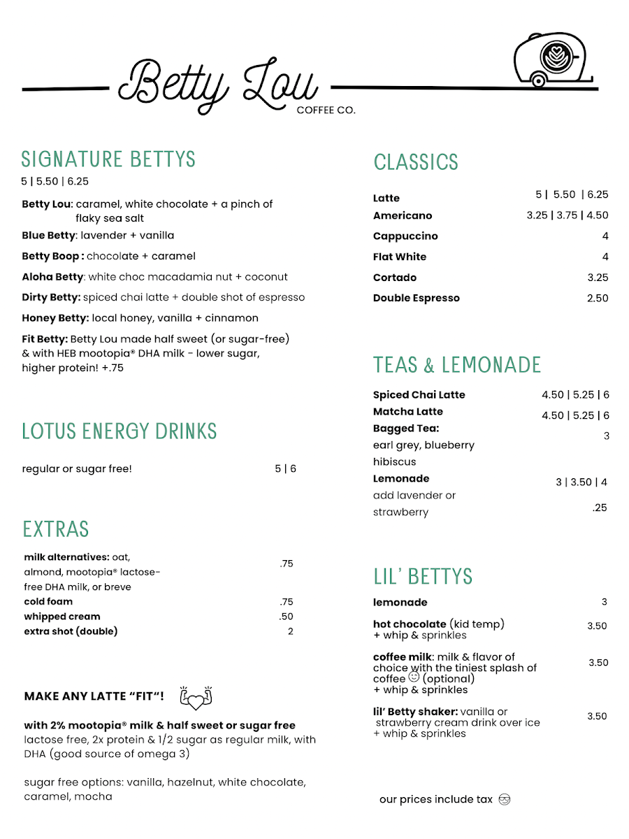 Betty Lou Coffee Co, nestled in the heart of New Braunfels, TX, offers a vibrant menu that goes beyond the classics. This inviting coffee spot is renowned for its smooth, bold brews and inventive signature lattes like the Fit Betty—a sugar-free delight—and the uniquely crafted Miso Salted Caramel and Ube Matcha. Each drink balances rich flavors with artistic presentation, reflecting the baristas' passion and care.